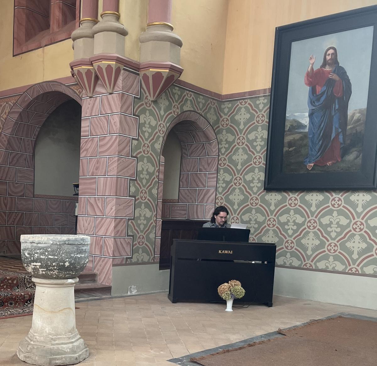 An der letzten Station in Ampfurth setzte sich Julius Jung an die Orgel aus der Werkstatt von August Troch (1817 Bornstedt – 1890 Neuhaldensleben). „Herr, mach uns stark im Mut, der dich bekennt“, ein gesungenes Mittagsgebet und zwei Orgelstücke boten hier den Rahmen für die Gemeindekirchenratseinführung des Kirchspiels Schermcke mit den Gemeinden Ampfurth, Altbrandsleben und Schermcke.
